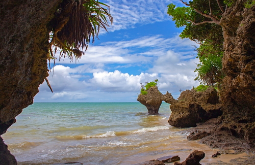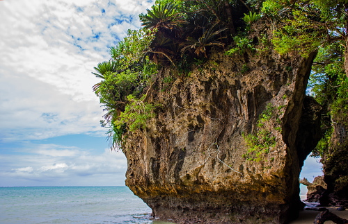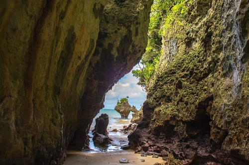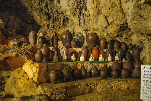 | 石垣島北部にあるサビチ鍾乳洞は、日本で唯一海に抜ける事が出来る鍾乳洞で、石垣島が出来る2億7千年前に海底より浮上したのではないかと言われている鍾乳洞です。主洞の長さは237m・支洞の長さは85mで、洞穴の幅は平均15m・洞穴の高さは最大12mの鍾乳洞です。入口にある池には長さ1mを超える天然鰻が生息しています。洞内は鍾乳石や八重山焼きの壺や瓶が置かれており、塩漬けした豚肉を瓶に詰めて保存する「スーチキガミー」があります。海側に抜けると素晴らしい景色を眺められます。 入洞料金:大人:1,250円 小人: 600円 入洞時間:9:00〜18:00 |