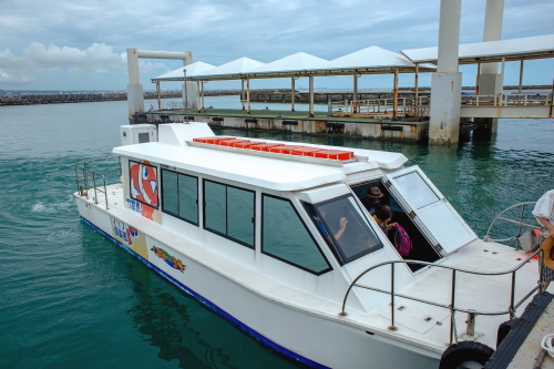 | 竹富島・竹富港から出港する竹富島グラスボートは、竹富島周辺の海底を観賞する事が出来る遊覧船です。竹富島周辺は日本最大の珊瑚礁である石西礁湖であり、様々な魚や珊瑚が生息しています。グラスボートはその日の海の状況を見て遊覧ポイントを巡り、約30分間の遊覧です。 営業時間:9:00〜17:00 随時運行 利用料金:大人 1,200円 小人 600円 |