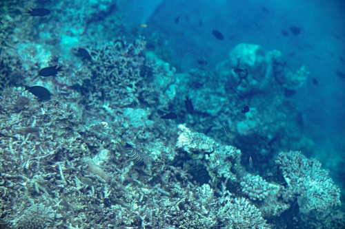 | 竹富島周辺の海底から湧き出る温泉の泡。 |