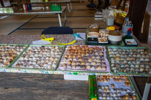| 1923年に建築された喜舎場邸の貝の御守体験。 |
