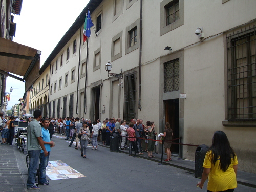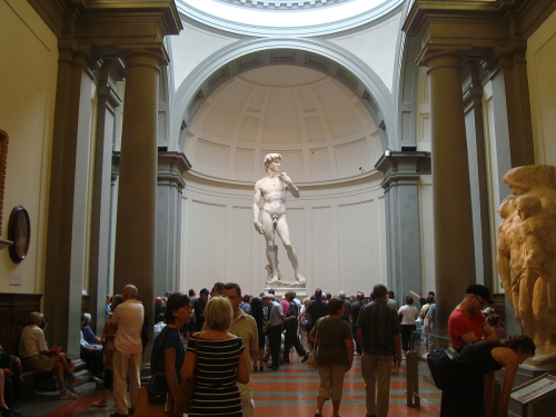 | フィレンツェでは1〜2位を争う程人気がある美術館で、中でも有名なのがミケランジェロ作の「ダヴィデ像」です。この美術館に展示されているダヴィデ像は、本来ヴェッキオ宮殿前に置かれていたのですが、天候や歳月による損傷を防ぐとの事でこのアカデミア美術館に展示されたものです。ヴェッキオ宮殿前や、ミケランジェロ広場などに置かれているものはレプリカです。 訪れる際には、事前の予約があったほうが確実に無難です。 |