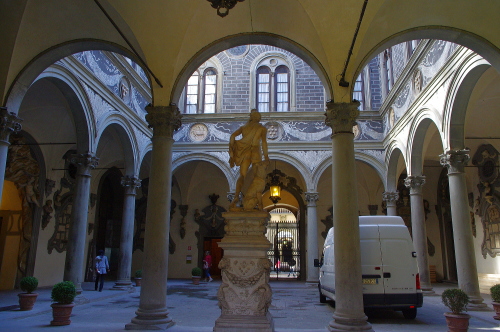 | メディチ・リッカルディ宮は、祖国の父・老コジモがメディチ一族の住居として1444年に建設された宮殿です。その後、リッカルディが買い取った事で現在の名前が付けられています。外観は市民の反感を買わぬよう非常に質素なものですが、宮殿内部は贅を尽くした造りになっています。入場料:7ユーロ。 |