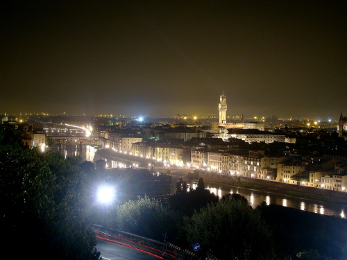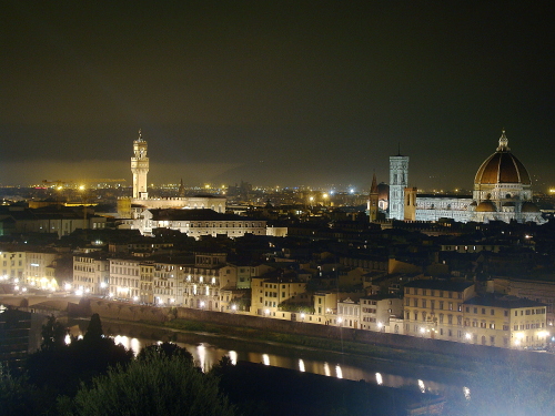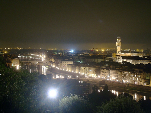 | ヴェッキオ宮殿とアルノ川沿いの夜景を望む。 |