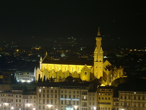 | サンタ・クローチェ教会のライトアップを望む。 |