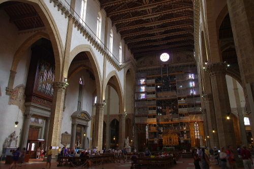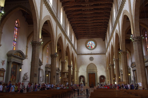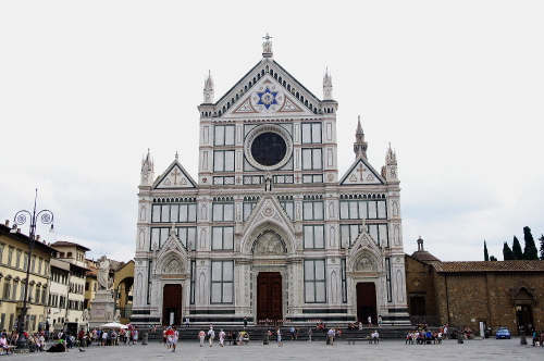 | フィレンツェの中心部より東にあるこの教会は、1294年に建てられた教会で、ダンテ・ミケランジェロなどイタリアを代表する著名人のお墓がある教会で有名です。また、サンタ・クローチェ教会教会はウッフィッツィ美術館に劣らずの美術・芸術作品の宝庫であり、その芸術品には圧巻されます。 |