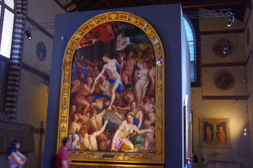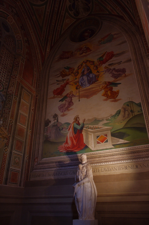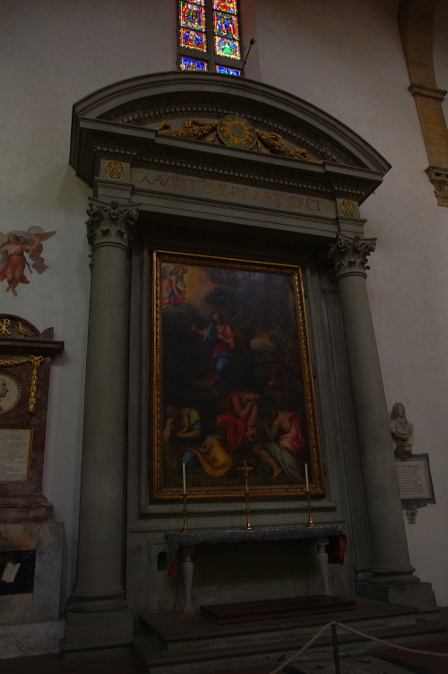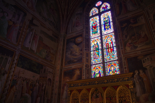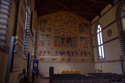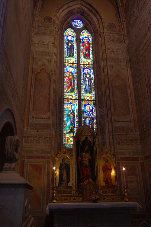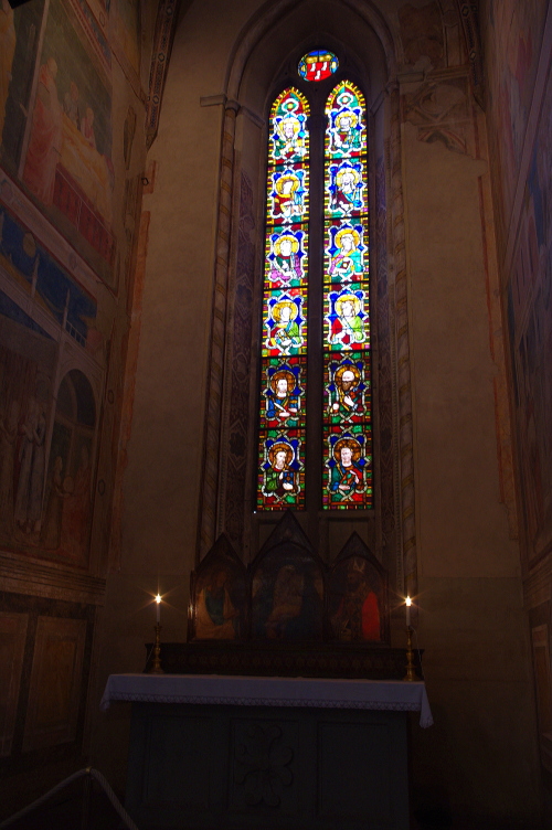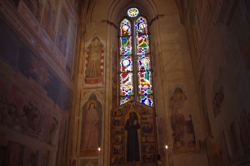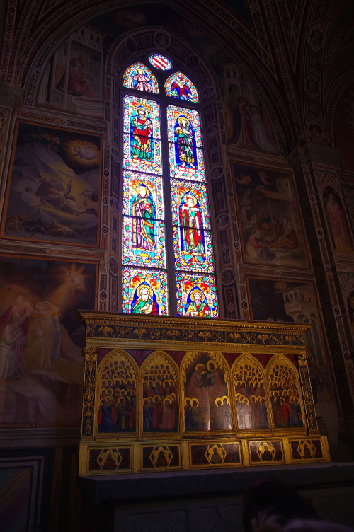 | 手前は「バロンチェッリ祭壇画」:ジョット・後ろの壁画は「聖母マリアの生涯」:タッデオ・ガディ。 |