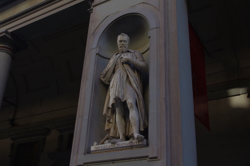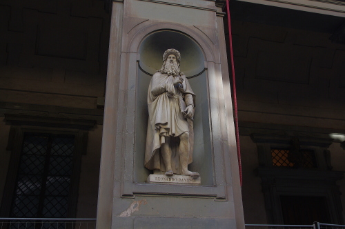 | ウッフィッツィ美術館の柱には偉人の石像があります。 |