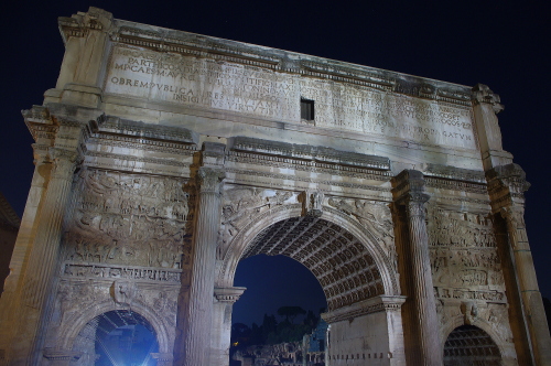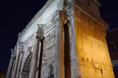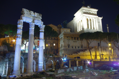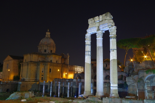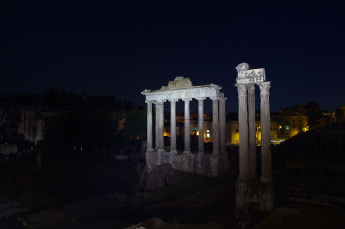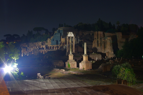 | 帝政ローマ時代の遺跡が発掘・修復されているフォロ・ロマーノは、夜になるとそれぞれの遺跡がライトアップされ、神秘的な光景になります。 |