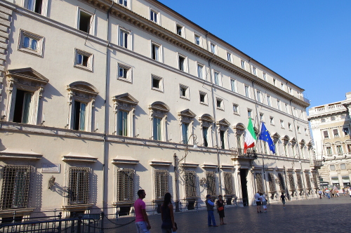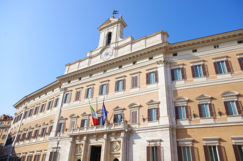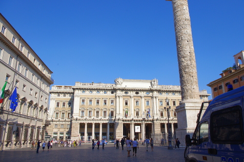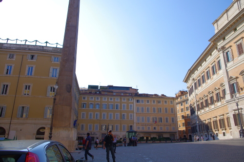 | モンテチトリオ広場はトレヴィの泉の近くにあり、広場にはモンテチトリオ宮殿があります。この宮殿は現在では下院の国会議事堂として使われています。広場の中央には紀元前6世紀に造られたオベリスクがあり、日時計の指針版として使われてたそうです。 |