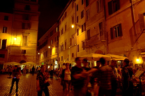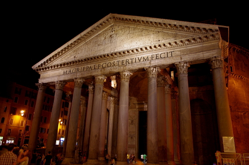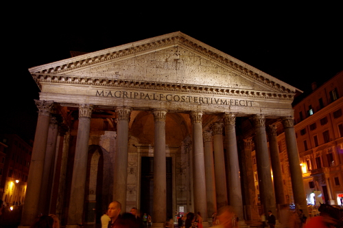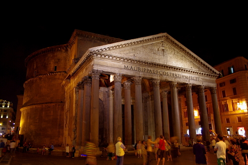 ロトンダ広場にあるパンテオンは夜になるとライトアップされます。また。ロトンダ広場にはオープンカフェが並び、広場自体もたくさんの人で賑わっています。
