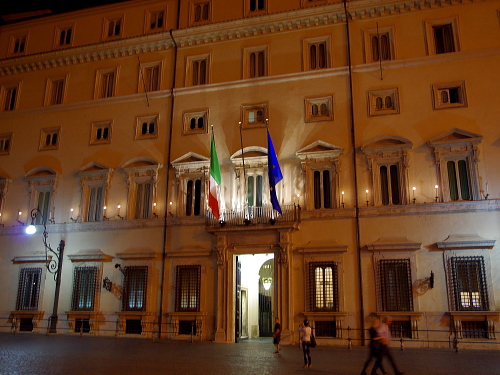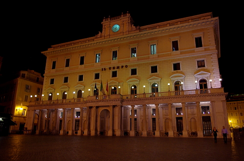 モンテチトリオ広場はトレヴィの泉の近くにあり、広場にはモンテチトリオ宮殿があります。この宮殿は現在では下院の国会議事堂として使われています。広場の中央には紀元前6世紀に造られたオベリスクがあり、日時計の指針版として使われてたそうです。夜になると昼間の賑わいが嘘のように静かな広場になります。