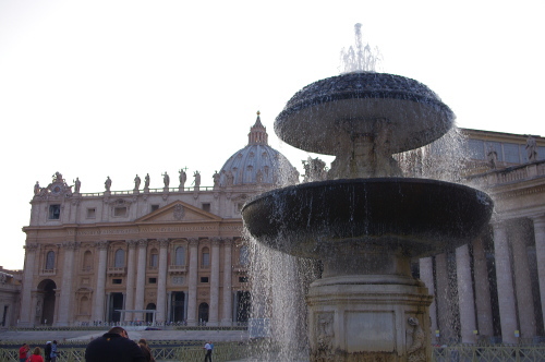 | サン・ピエトロ大聖堂と広場の噴水。 |