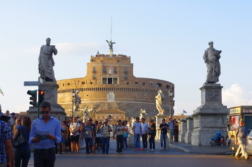 | サンタンジェロ橋からサンタンジェロ城を見る。 |