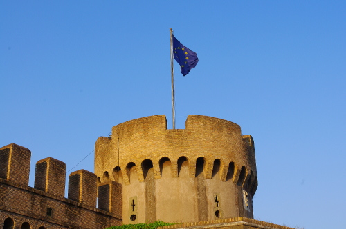 | サンタンエジェロ城に揚がるEUの旗。 |