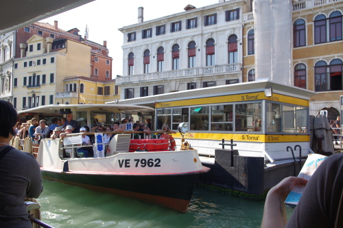 | 公共水上バス(ヴァボレット)からヴェネツィアの街並みを見る。 |