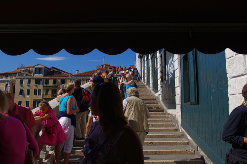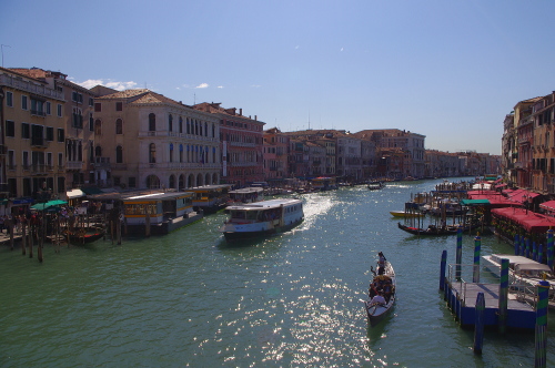 | リアルト橋の下から大運河を眺める。 |