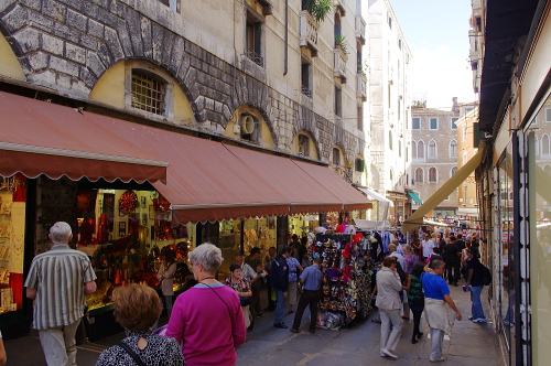 | リアルト橋手前に並ぶ商店。 |