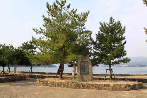 | 宮島桟橋近くにある「日本三景碑」。 |