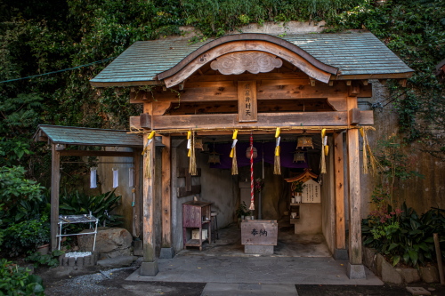 | 岩窟弁財天社・岩窟内の小さな社。白龍王神が祀られています。 |