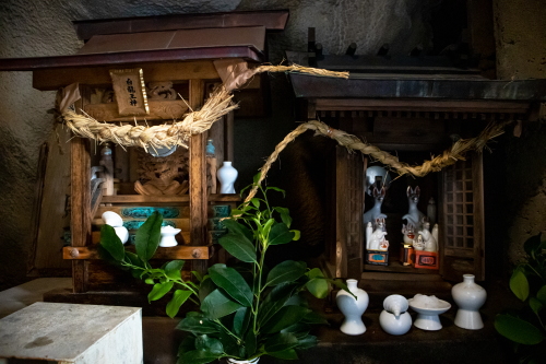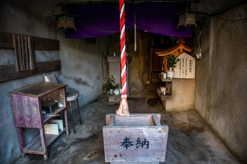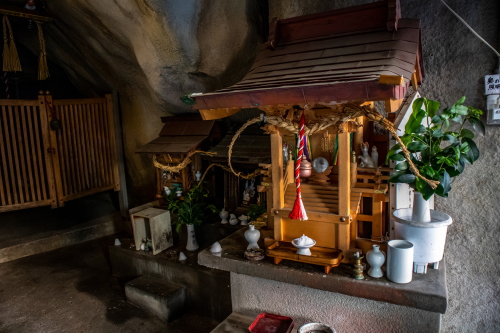 | 岩窟弁財天社・岩窟内の小さな社。 |