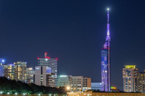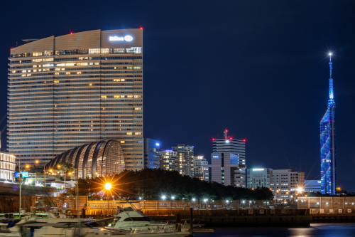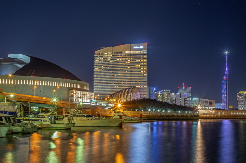| PayPayドームの近くにある伊崎漁港からは、PayPayドームやヒルトン福岡シーホーク・福岡都市高速が一番近くに見える夜景スポットです。PayPayドームで福岡ソフトバンクホークスが試合をする日や、ヒルトン福岡シーホークの宿泊客が多い時が一番夜景がきれいに見えます。この伊崎漁港一帯は住宅地でもありますので、マナーには気をつけましょう。また漁港内に車を駐車若しくは侵入は禁止されております。 |