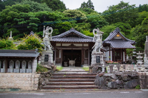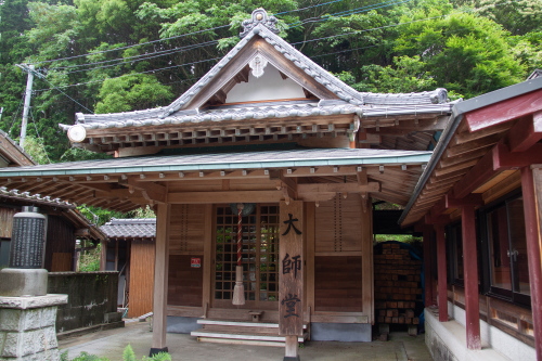 | 鳴渕ダムから山道を登った所にある慈妙法院別院は真言宗の寺院で、JR城戸南蔵院前駅近くにある慈妙法院の別院と思われます。本堂には不動明王が祀られており、大師堂・薬師堂があります。道路向かいには三十三観音堂があります。比較的新しい寺院です。 御本尊:不動明王 |