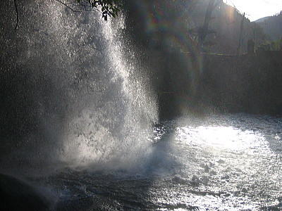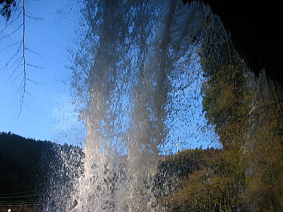 | 水しぶきが滝の裏に周る遊歩道まで届きます。 |