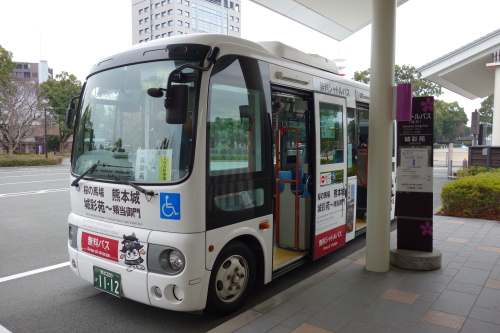 | 熊本城二の丸駐車場と桜の馬場城彩苑間を走るシャトルバス。 |