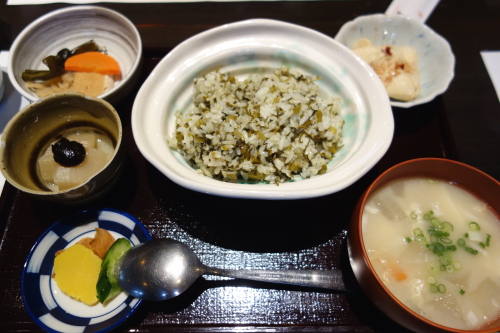 | 高森「阿蘇庭 山見茶屋」の高菜飯定食。 |