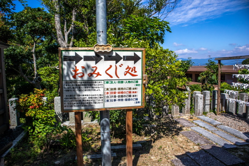 | おみくじ処。5色の糸から望みたい御縁の糸に御神籤を付けるといいとされている様です。 |