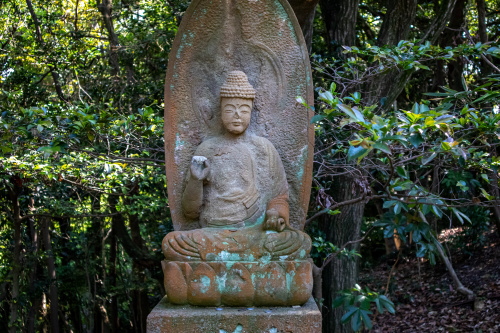 | 奥の院へ続く参道沿いにある薬師如来石像。 |