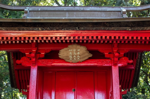| 奥の院の扁額には「日車天玉」「安高天玉」「如意龍王」と書かれています。 |