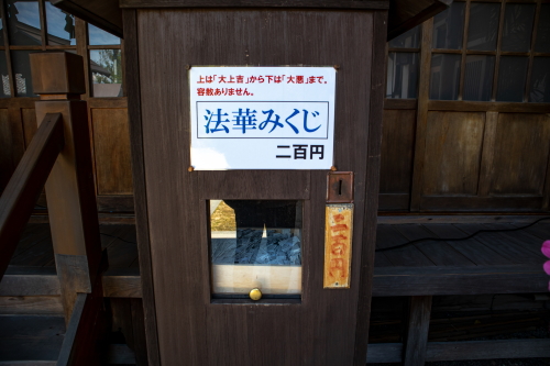 | 上は「大上吉」から下は「大悪」まで容赦ない法華みくじ。 |