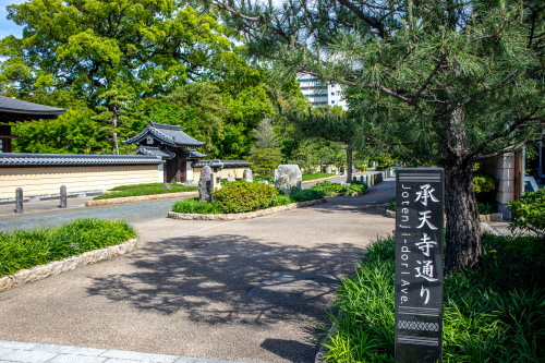 承天寺は臨済宗東福寺派で山号は萬松山です。聖一国師(円爾弁円)により1242年に開山・宋出身の貿易商・謝国明が創建した寺院で、寺蔵の釈迦三尊像(鎌倉期)・禅家六祖像(鎌倉期)・銅鐘(高麗時代)は国の重要文化財に指定されています。