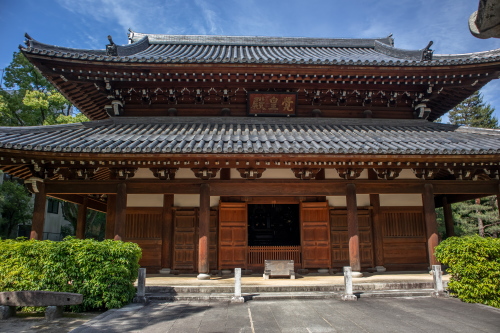 承天寺開山の祖・聖一国師は1235年に宋へ渡り、艱難辛苦の末に禅の大法を修め1241年に日本へ帰国した時に、仏法の教義以外に宋の文化を持ち帰りその代表的なものが、うどん・そば・羊羹・饅頭などの製法であったとされています。その為「饂飩蕎麦発祥之地の碑」が承天寺にあります。また本堂の方丈の前には立派な石庭「洗濤庭(せんとうてい)」が広がります。 1963年の博多駅移転に伴う区画整理事業により、境内は「承天寺通り」という名の市道によって北東と南西に分かれていて、山門や仏殿は南西側、本堂や墓地などは北東側に分断されています。 御本尊:釈迦如来 |