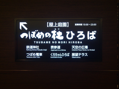 | JR博多駅10階・くうてんにあるつばめの社ひろば案内板。 |