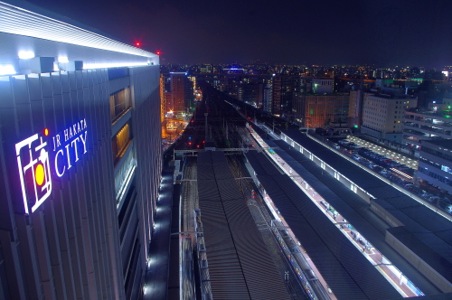 | 福岡の玄関口であるJR博多駅は、九州新幹線の開通に伴い、大幅なリニューアルを行いオープンしました。博多駅には阪急百貨店や230の専門店・レストラン・映画館など、大型商業施設が入居し、JR博多シティとして日本最大規模の駅複合商業施設です。その博多駅の最上階・11階には「つばめの杜ひろば」があり、その広場には展望テラスがあり、博多湾や博多駅周辺の夜景を観賞できます。 |
