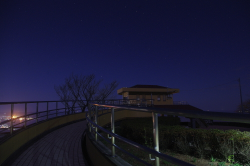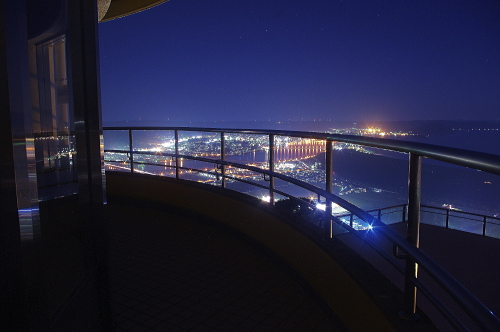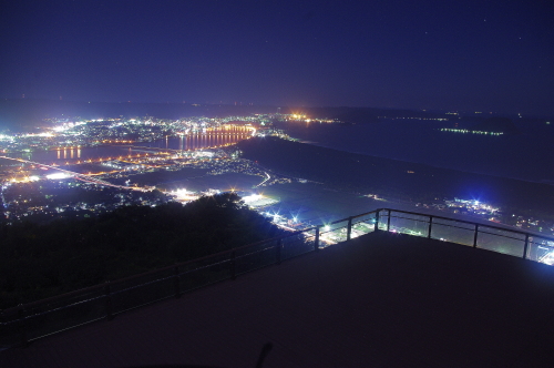 | 新しく造られた展望スペースと唐津市の夜景。 |