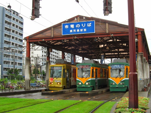 鹿児島駅前にある市電・鹿児島駅前電停。