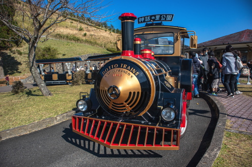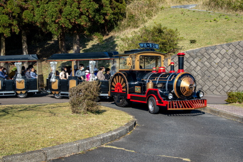 | よかもん市場からクラブハウス間を運行するロードトレイン。 乗車料金:片道200円 往復400円 3歳以下は無料 |