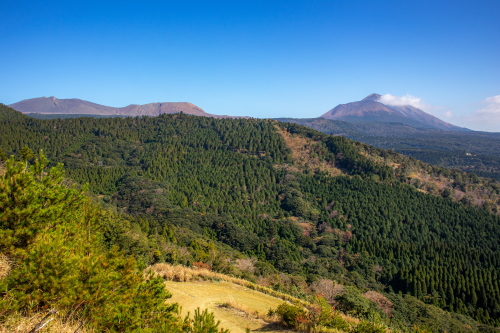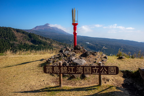| 展望広場から霧島・高千穂峰を眺める。 |