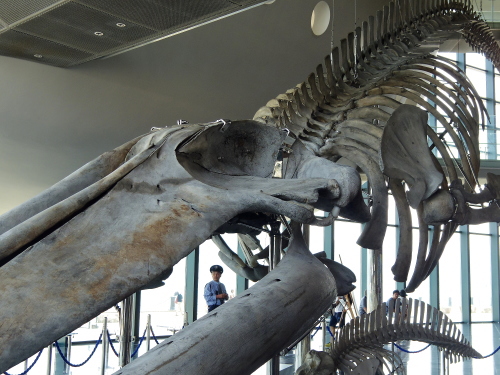 | シロナガスクジラの全身骨格標本。 |