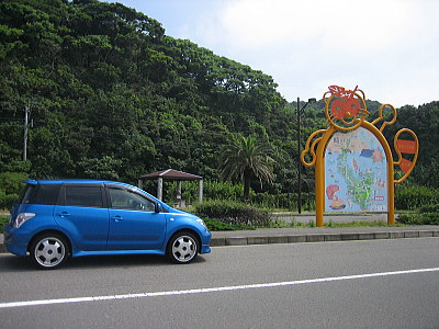 | 魚の形をかたどったバス停。あちらこちらにあります。 |