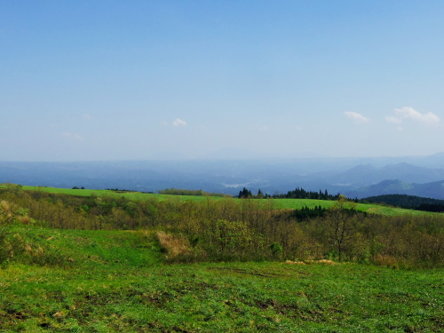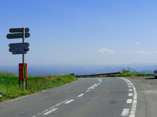 | 大分県日田市と熊本県小国町を結ぶ約55kmのドライブに最適な農道「スカイファームロードひた」はドライブするには最適な道で、雄大な自然を楽しめる農道になっています。この県境手前にある標高約800mの亀石峠からは熊本県小国町の高原を眺める事ができるスポットになります。休憩するには最適なスポットです。 |