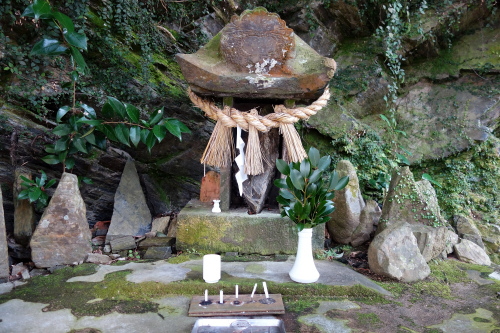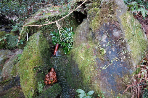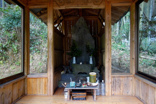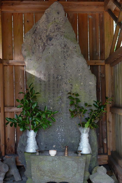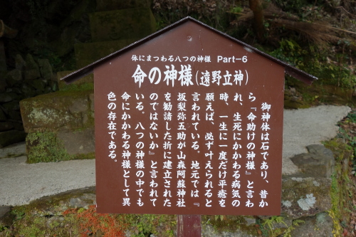 | 命の神様・遠野立神。御神体は石であり、生死にかかわる病気の時、一生に一度だけ平癒を願えば必ず叶えられると言われています。 |
