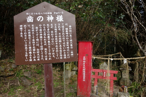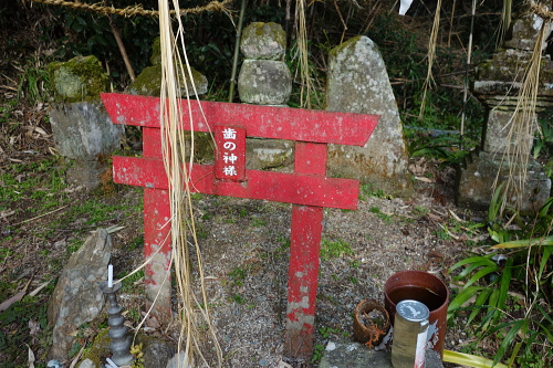 | 歯の神様。祭神は自然石。歯に良く似た墓石で、歯の痛みを鎮めてくれるという日本でも珍しい神様。 |
