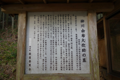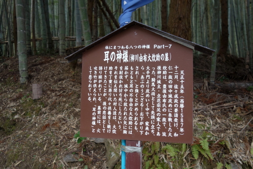 | 耳の神様・柳川由布大炊助の墓。放たれた矢に胸を射抜かれ討死した耳が不自由な大炊助を丁重に葬り、代々供養をし続けてきたことが、後の悲話として語り継がれています。 |