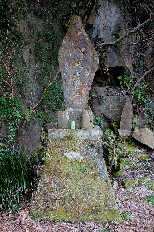 | 目の神様・岩本宮にある「八大龍王」と刻まれた石碑。 |