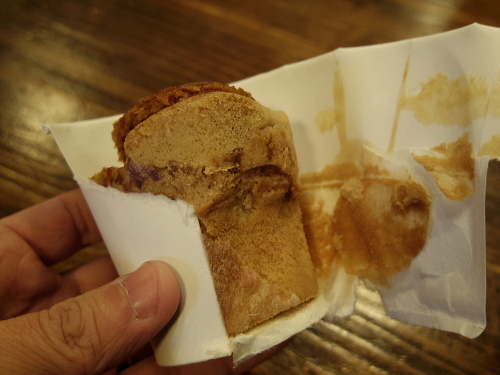 | 温泉を利用して蒸した蒸しパン。モチモチ食感で美味しい。150円。 |