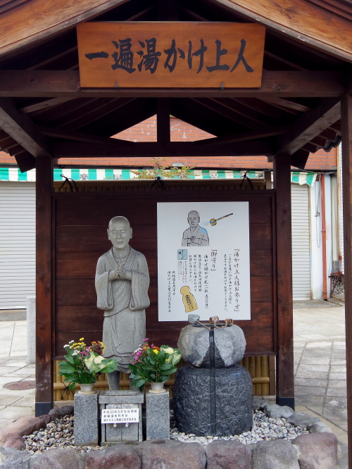 | 一遍湯かけ上人。体の悪いところに湯をかけて参拝します。 |